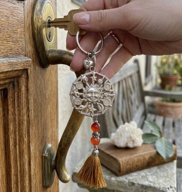Llevá la fuerza del astro rey con vos a todas partes. Nuestro Llavero Solar Alquímico es una pieza de protección y activación seleccionada por FLM Casa Holística para quienes buscan conectar con su poder personal, alegría y vitalidad.
